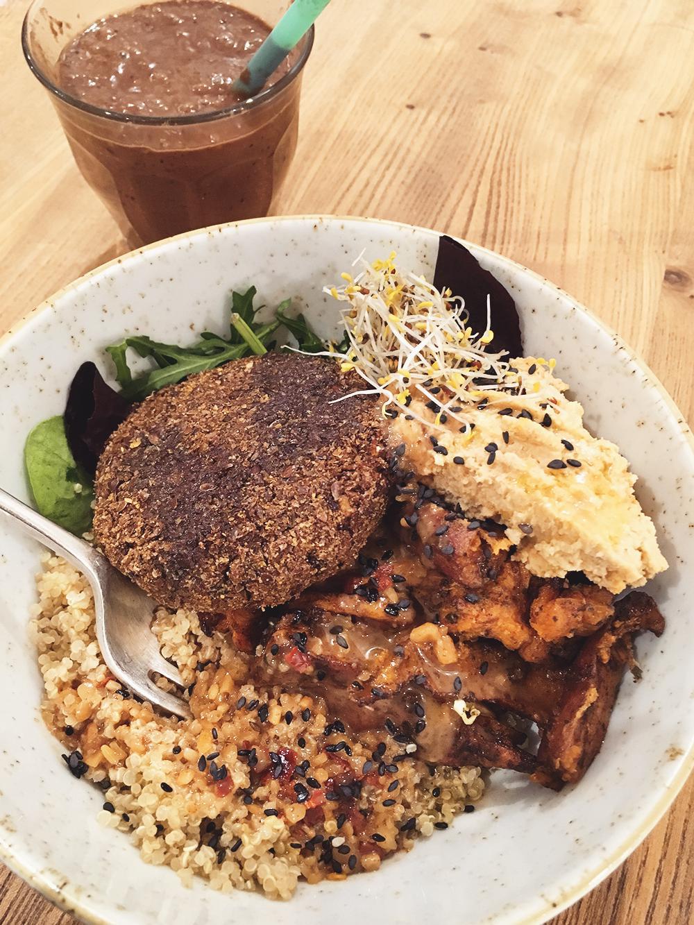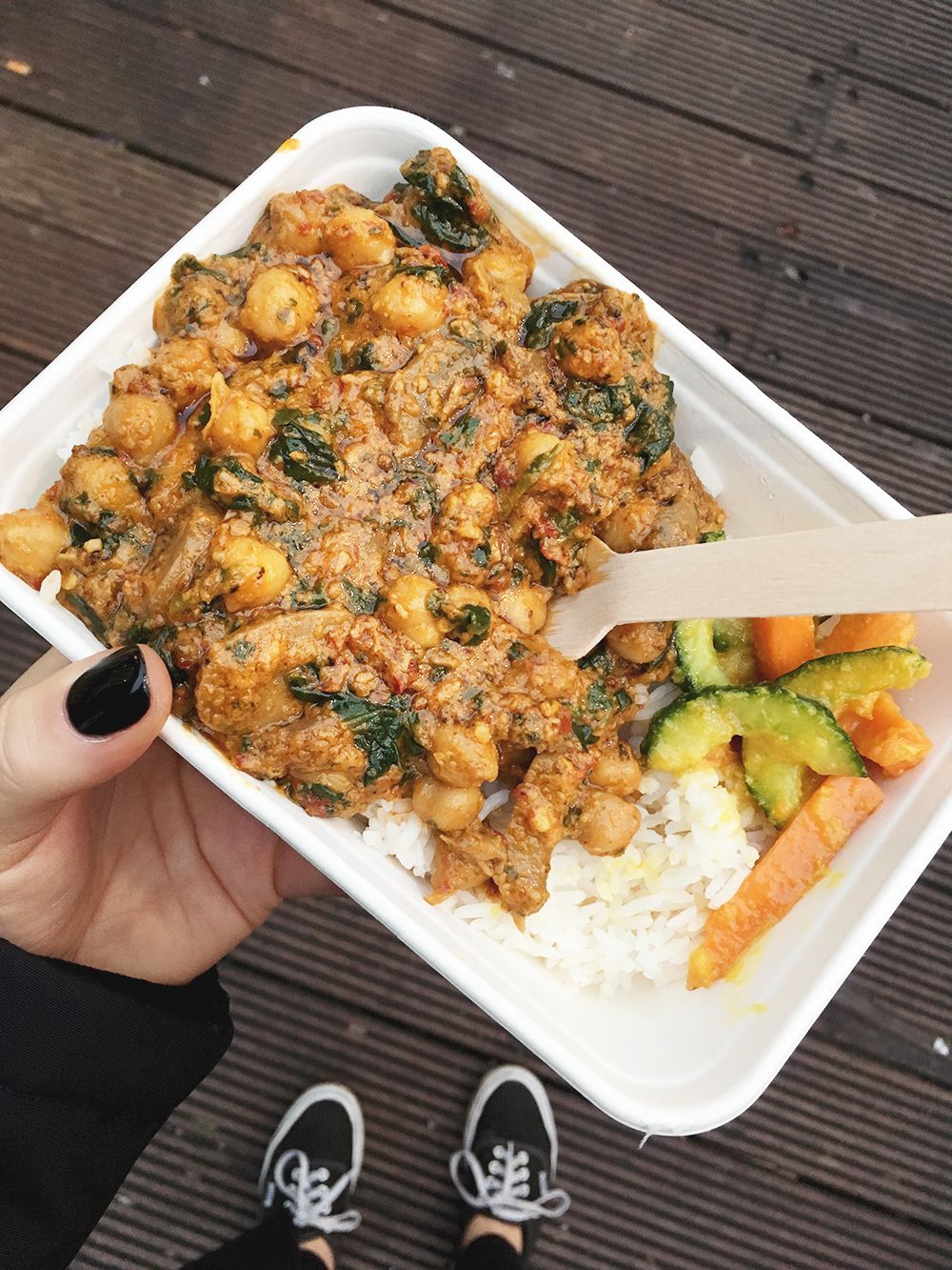 Kerb Market to miejsce w którym zachodzą częste zmiany, ile razy tam nie jestem to znajduję coś nowego. Nie wegańskie, nawet nie wegetariańskie, ale czasem trzeba wyjść poza swoją strefę komfortu i to akurat wyjście mogę uznać za udane. Makatcha to dania inspirowane kuchnią Malezji i Indonezji. W menu pozycja Vegan Rendang, to taka mini podróż do miejsc w których jeszcze mnie nie było. Dobrze znane składniki – grzyby, ciecierzyca, szpinak, masło orzechowe i mleko kokosowe – a jednak podane na słodko, lekko ostro, inaczej niż robię to zwykle w domu. Sycące i aromatyczne curry to jest to!