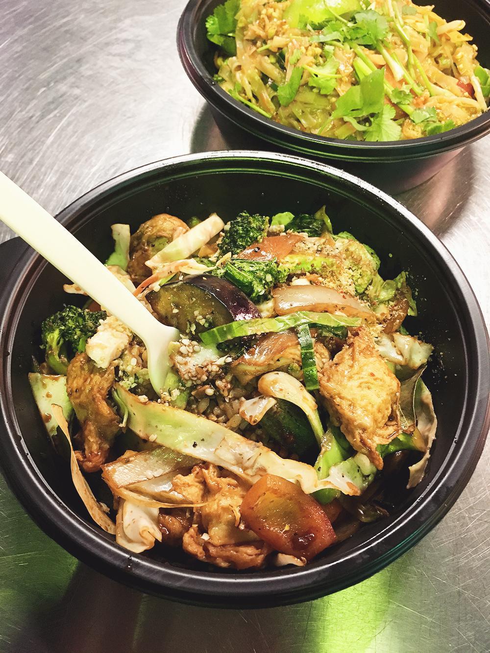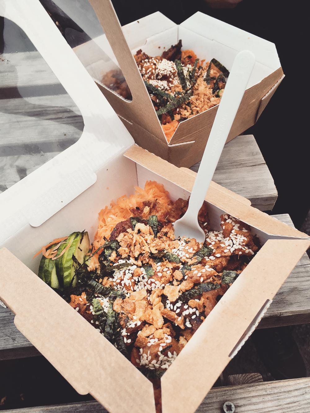 Sami o sobie piszą że nie są weganami i nie przeszkadza mi to zupełnie, bo tworzą w 100% roślinne dania, przemycając w nich kuchnię wietnamską. To tak naprawdę taki popup z jedzeniem, gdyż nie mają lokalu do którego możesz pójść… ja trafiłam ich na Broadway Vegan Market (London Fields Primary School, Westgate Street, E8 3RU) w sobotę. Menu jest minimalistyczne, 3 potrawy i 2 napoje (tajska ice tea i wietnamska ice coffee). Jak na fast food przystało króluje gluten i słynna wietnamska „bahn mi” w dwóch odsłonach, to tak naprawdę bagietka wypełniona świeżymi warzywami, piklami, sosami, pastą orzechowo-grzybową i jakimś proteinowym dodatkiem. Sałatka to raczej danie na ciepło, z substytutem kurczaka, świeżymi warzywami i wyrazistym sosem. Smak naprawdę ciekawy, choć ten fake kurczak był jak dla mnie za bardzo przysmaganym grillem. Następnym razem celuje w bagietkę.