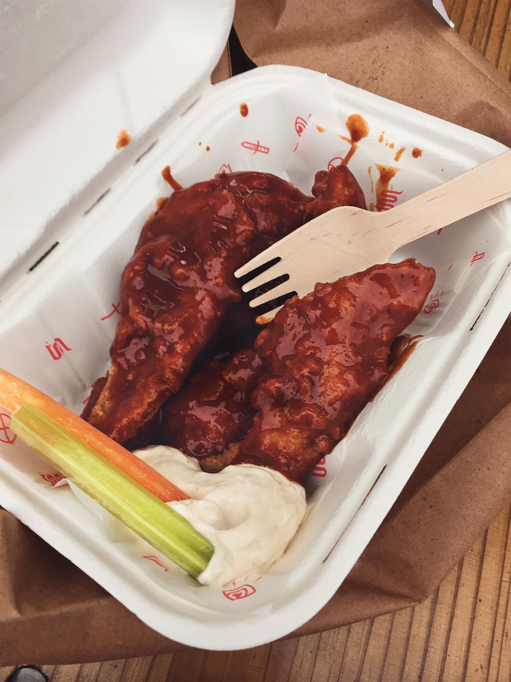 Świątynia seitan’a do której zjeżdżają się wyznawcy fast food’a z całego świata, mieści się kilka minut o stacji Hackney Central (overground). Tworzy ją kilka metrów lokalu – z jedyną opcja siedzącą na zewnątrz – i kilkoro naprawdę szybko uwijających się typów. Szybkie jedzenie, długie kolejki, mało miejsca i naprawdę solidny seitan w kilku odsłonach. Przetestowaliśmy wrapa, burgera i skrzydełka. To pierwsze to raczej na mały głód i bardziej fit. Drugie to już spory kawał fake kurczaka w typowo fast-food’owej bułce z odrobiną warzyw. Trzecia opcja kawałki seitan’owego kurczaka w sosie BBQ jest dla wielbicieli trochę ostrego żarcia, mocno intensywne w smaku, ale spoko. Jak się nie najesz, możesz poprawić frytkami i fairtrade’ową Karma Colą. Doceniam taki fast food, chodź wolę raczej slow ;)