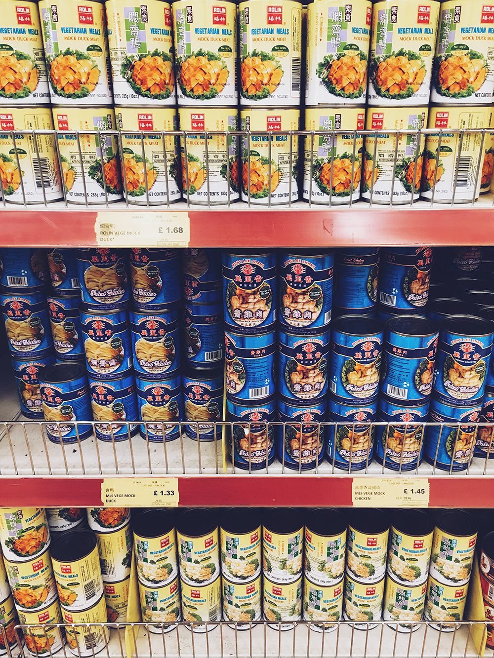 Chiński supermarket to zawsze raj dla wegan, a jeśli okazuje się być 10 minut spacerkiem od domu twojej siostry, radość jest podwójna. Był piękny słoneczny dzień, ale Wing Yip jako pierwszy punkt wycieczki wymagał porządnego rozpoznania. Ot takie drobne zakupy od puszkowanych fake meat’ów, po suszone tropikalne owoce, kokosowe kawowe cukierki, jaśminowe herbatki, wegańską mrożoną rybę i świeżego jackfruita.