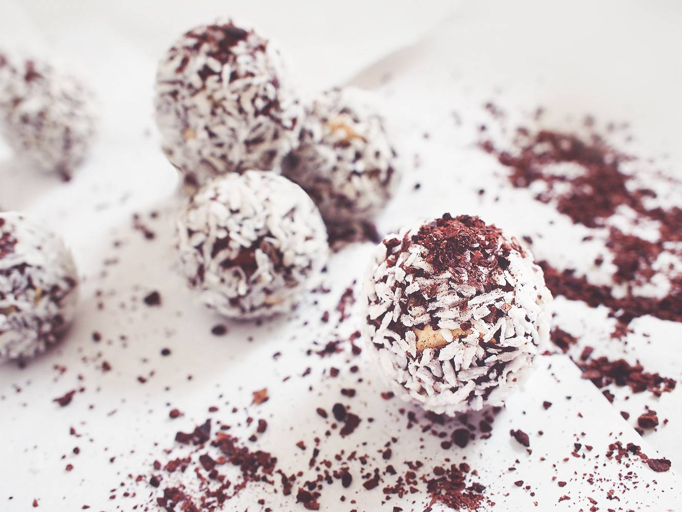 - Z gotowej masy formuj kulki i obtaczaj w wiórkach kokosowych.