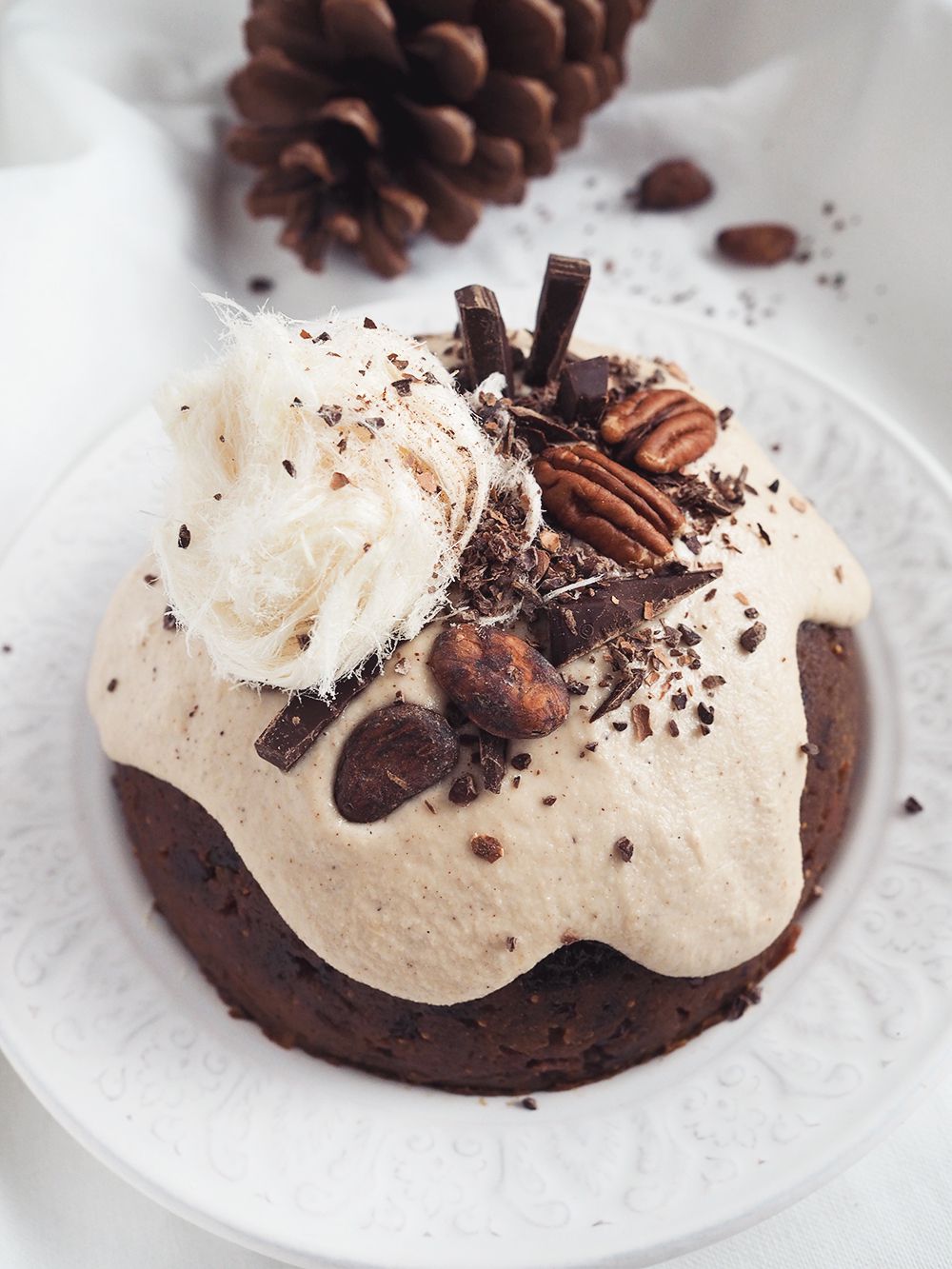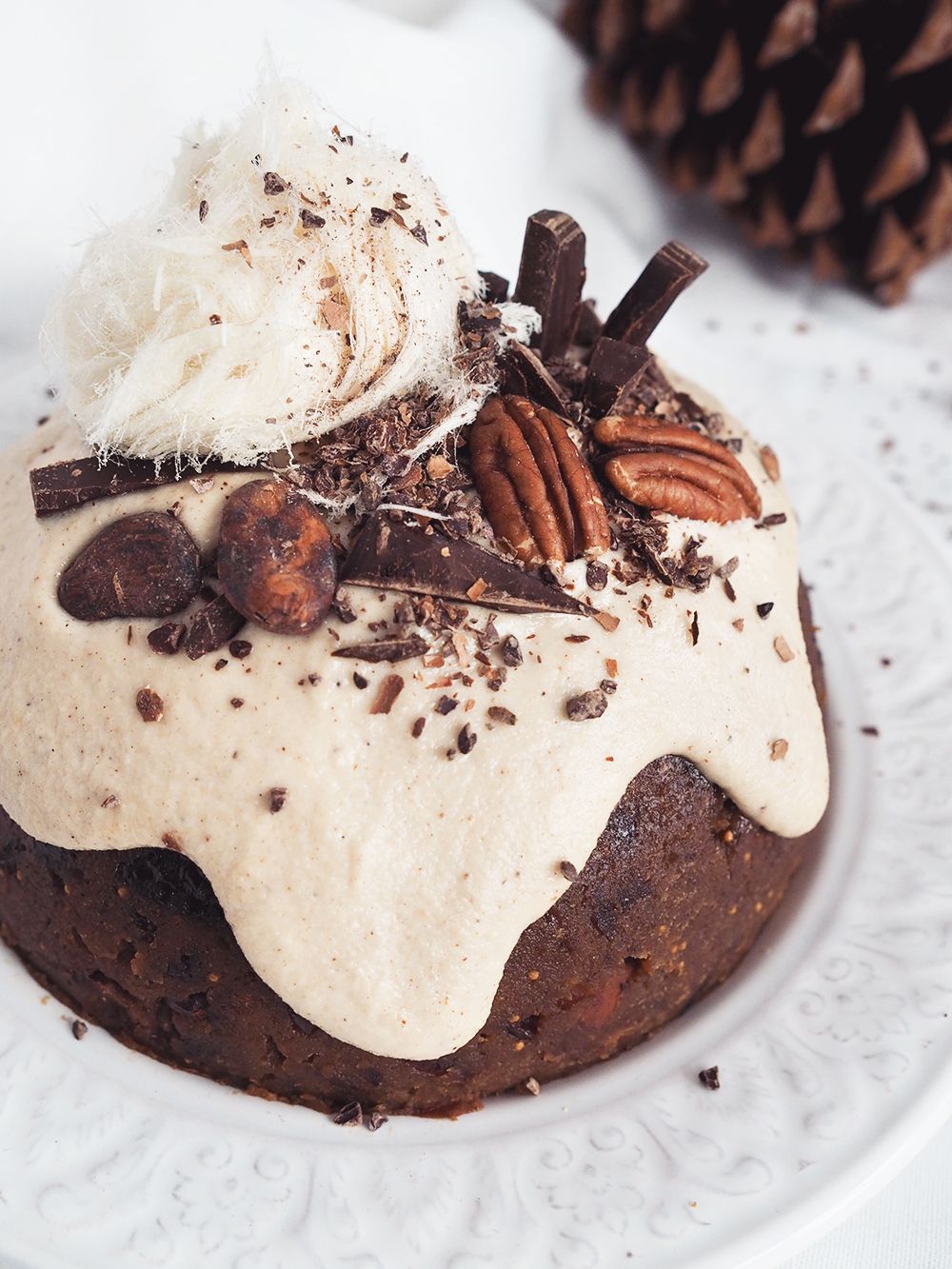 W sklepach królowały typowe angielskie potrawy świąteczne. Moja siostra zrobiła jedną z nich w wersji wegańskiej na mój przyjazd. Tzw. „mince pies”, to takie kruche babeczki wypełnione słodką bakaliową masą i posypane cukrem pudrem. Podaje się je zarówno na ciepło jak i na zimno. Ale poza „mince pies”, strasznie chciałam spróbować typowego „christmas pudding”… dlatego zrobiłam go w wersji wegańskiej, a przepis umieszczam już dziś!