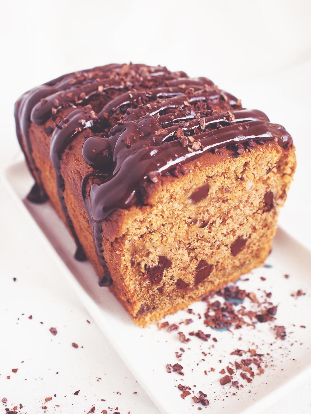- Gotowy chlebek możesz udekorować odrobiną roztopionej czekolady w formie polewy i orzechami (ziarnem kakaowca) lub poprostu grudami czekolady lub pominąć ten krok ;)