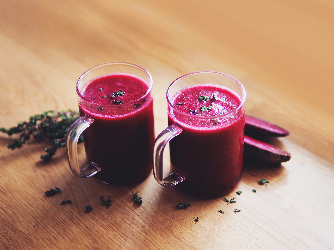 - Sok najlepiej zrobić przy pomocy wyciskarki wolnoobrotowej, ale jeśli jej nie posiadasz a masz mocny blender, możesz zrobić sobie gęste smoothie (umieszczając wszystkie składniki w kielichu blendera i blendując je).