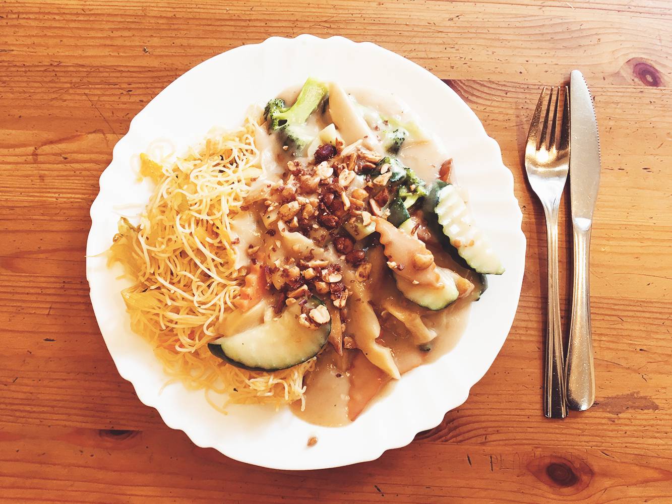 Happy Cow twierdził, że jest on w 100 % wegetariański z opcjami dla wegan, ale na miejscu okazało się że serwują tam także mięso. No cóż, nie było czasu na szukanie, tym razem był fast food w wydaniu wietnamskim.