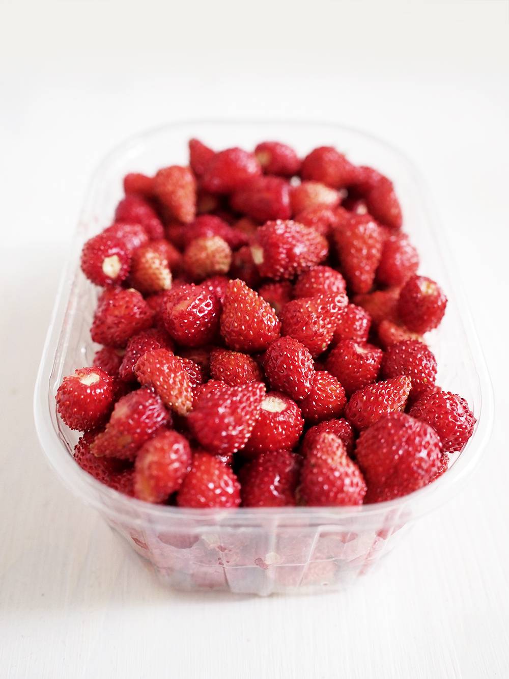 Kiedyś zrywałam je własnoręcznie z krzaczków pod lasem, uciekałam przed zaskrońcami, które strzegły tego cennego towaru, uciekałam przed każdym szumem i trzaskiem, który wydobywał się z głębi lasu. Ale wracałam po kolejną garść…poziomek! Wczoraj wśród miliona innych owoców i warzyw znalazłam je! W pamięci liczę ile lat minęło od mojej ostatniej konfrontacji z mrocznym lasem i cyklicznych kradzieży tych leśnych owoców, wyciągam hajs, płacę, są moje :)