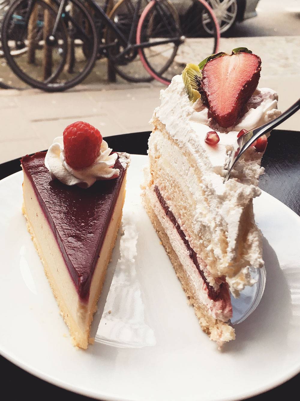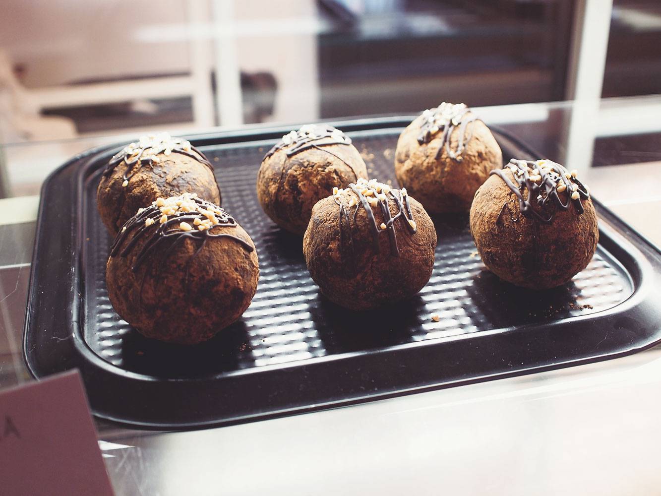 Cukiernia oferuje słodkości różnego typu, są niewinne bajaderki czy rurki z kremem idealne do cappuccino, ale można też uświadczyć totalnego cukrowego haju za sprawą tortu czekoladowego (ja osobiście przegrałam z kawałkiem owego). Za ladą znajdziesz także zdrowe desery bez-cukrowe i bez-glutenowe, takie na bazie kaszy jaglanej czy nasionek chia, z owocami w pucharkach. Jeśli planujesz wizytę na dłuższe ploty, zamów herbatę lub kawę, mają dwa rodzaje mleka roślinnego ;)