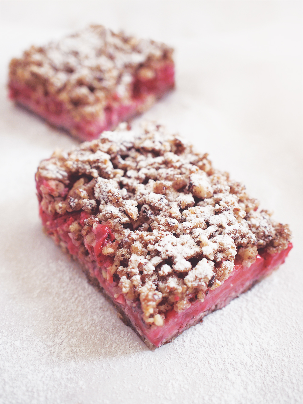 - Remove crust from the oven, pour with the filling and use the rest of the crust to make some crumble on the top layer of the cake.