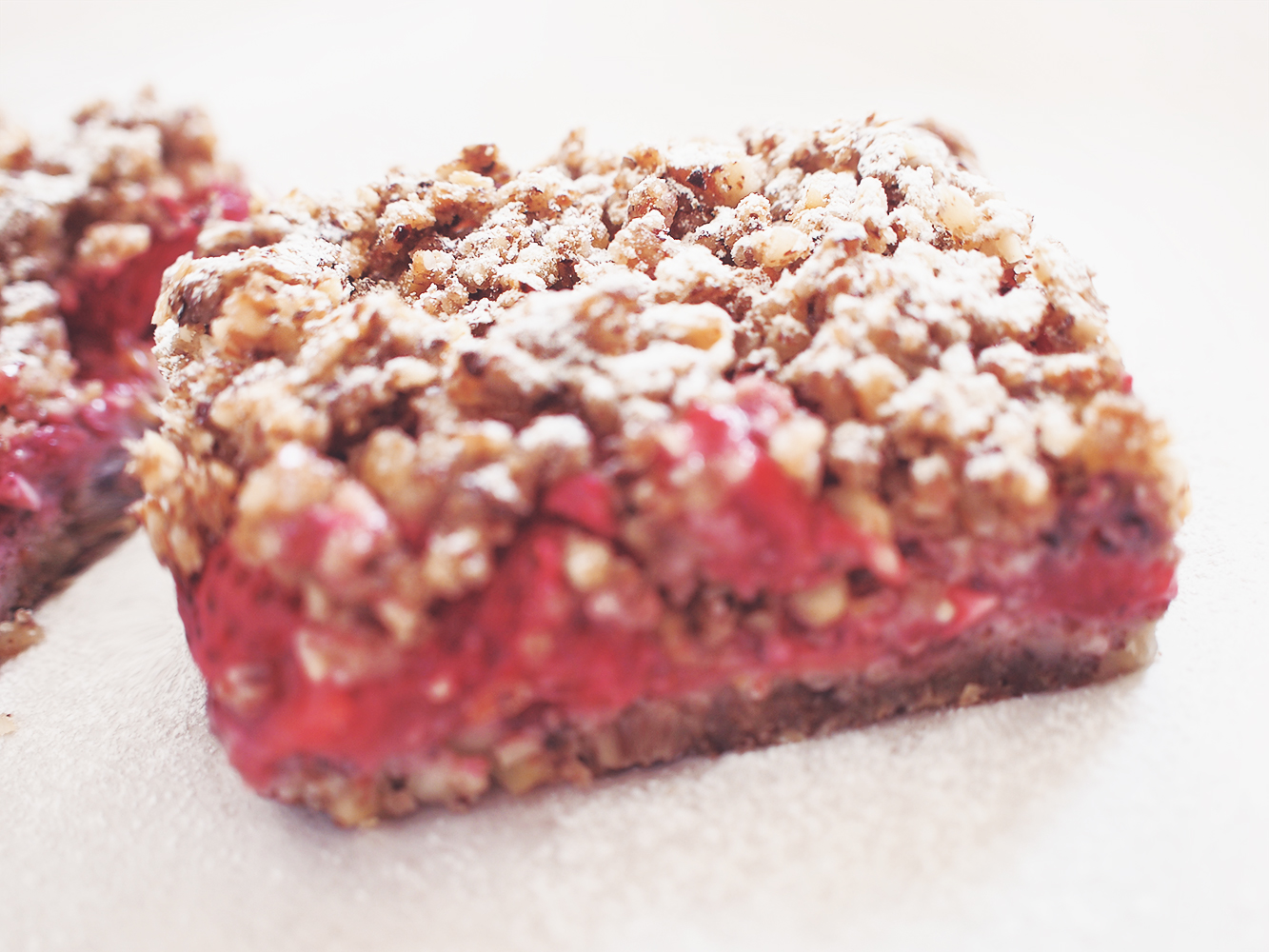 A deser wyglądał tak jak widzisz, był bezglutenowym ciastem z kruszonką, mocno orzechowym, słodzonym ksylitolem i ze względu na swoje walory smakowe zniknął bardzo szybko. Takie ciasto to samo zdrowie ;)