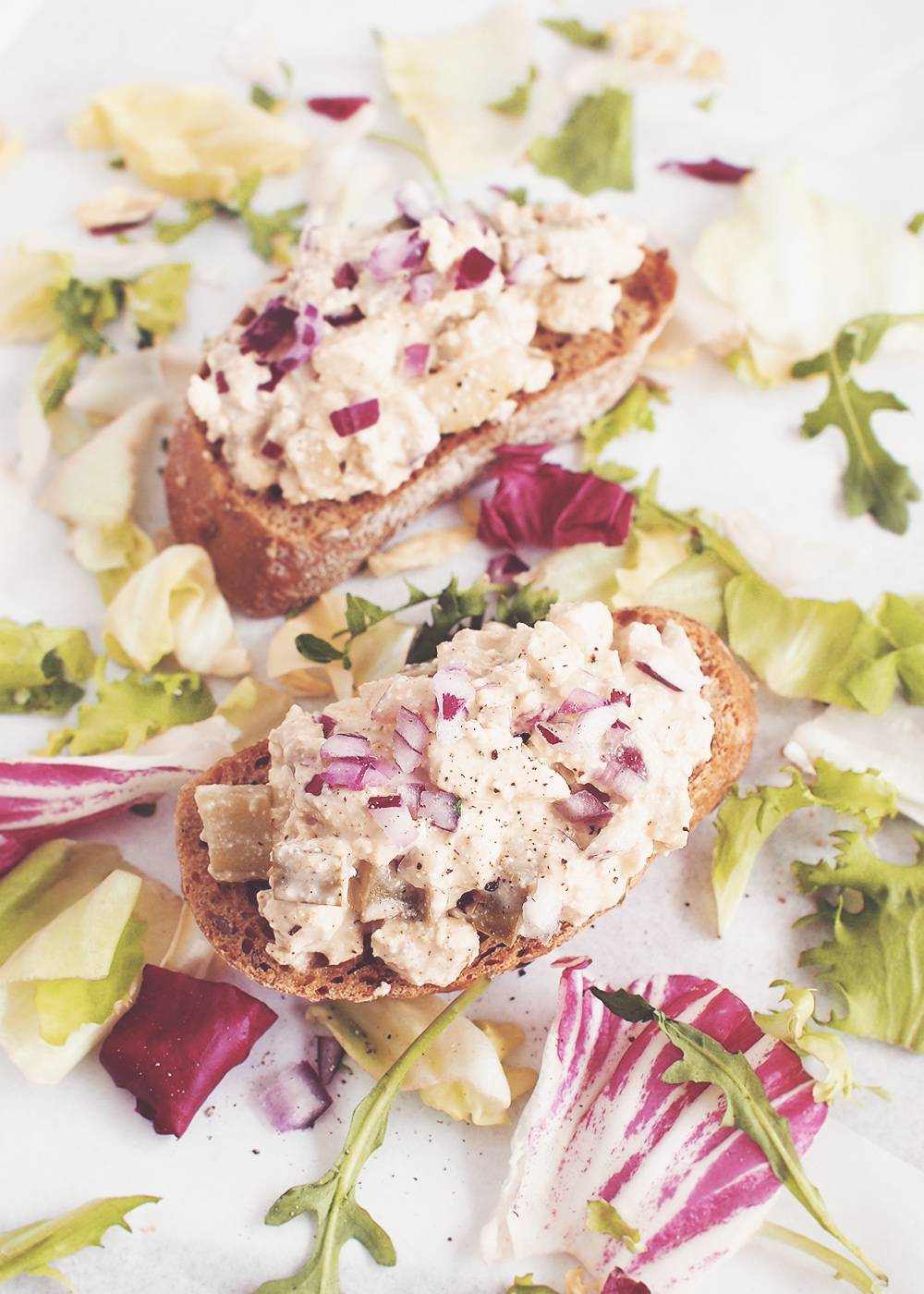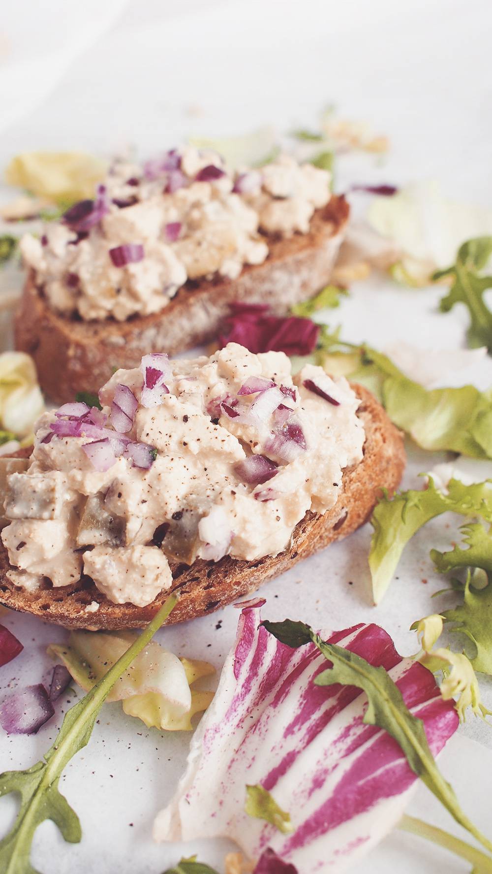 Dzisiaj na stole ląduje pasta na bazie wędzonego tofu ze słodkim ogórkiem konserwowym i czerwoną delikatną cebulką. Prosta, szybka, sycąca i intensywna w smaku. Zjedz na miejscu z chrupiącymi grzankami i sałatą, albo zapakuj na wynos do bułki pełnej świeżych warzyw i idź na spacer do parku ;)
