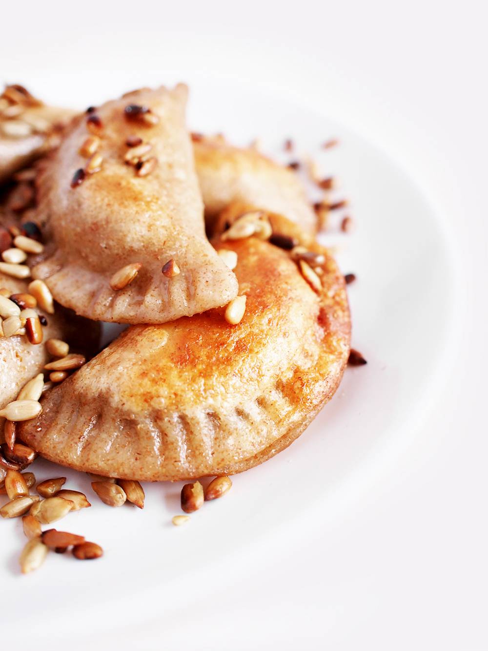 Mój brak patriotyzmu w stosunku do polskiej kuchni narodził się w wieku nastoletnim, w czasie tych świąt co będą niebawem. Nie lubiłam tych wszystkich rybich zwłok pod różnymi postaciami, poza pierogami z kapustą i grzybami oraz bigosem, wszystko fuj i smutek. Dlatego w ramach treningu przed 24tym, powrót do klasyki gatunku, pierogi nadziewane soczewicą. Bo najlepsze one są :)