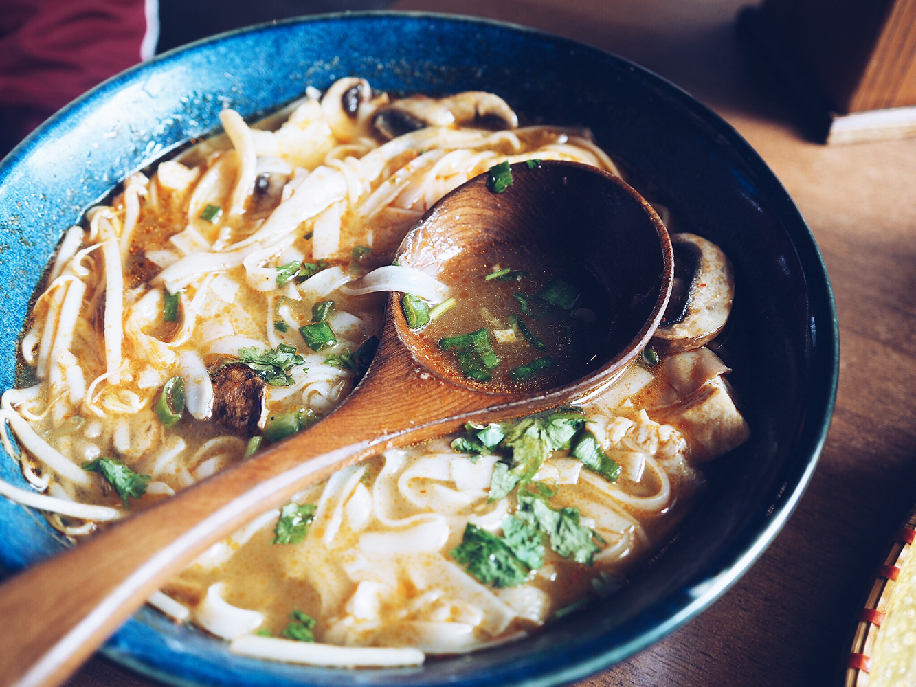 Lokal jest duży, jest opcja spożywania na powietrzu, jest toaleta, bar, głośna muzyka. W menu znajdziesz dania kuchni wietnamskiej w wersji wegetariańskiej, z opcjami wegańskimi. Wybór potraw spory, ciężko mi się było zdecydować, bo większość opisów brzmiała zachęcająco. W karcie znajdziesz przystawki, zupy, dania z ryżem, noodle, desery, kawę, herbatę, zimne napoje, ale też piwo i drinki.