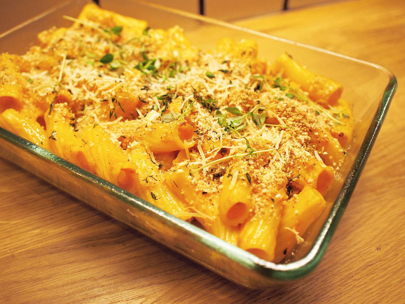 Pumpkin & thyme tortiglioni gratin