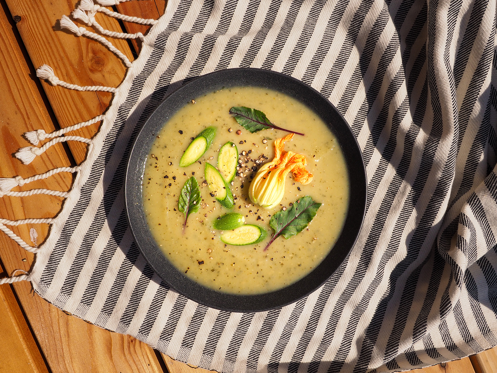 Na działce w świętokrzyskim, niewiele roślin ma się tak dobrze jak cukinia. Niczym ogromna ośmiornica wypuszcza swoje macki coraz dalej i dalej. Zajęła już połowę tunelu i chyba nie planuje na tym poprzestać. Za karę trafia do leczo, sałatek i zup… a przepis na cukiniowy krem trafia na bloga.